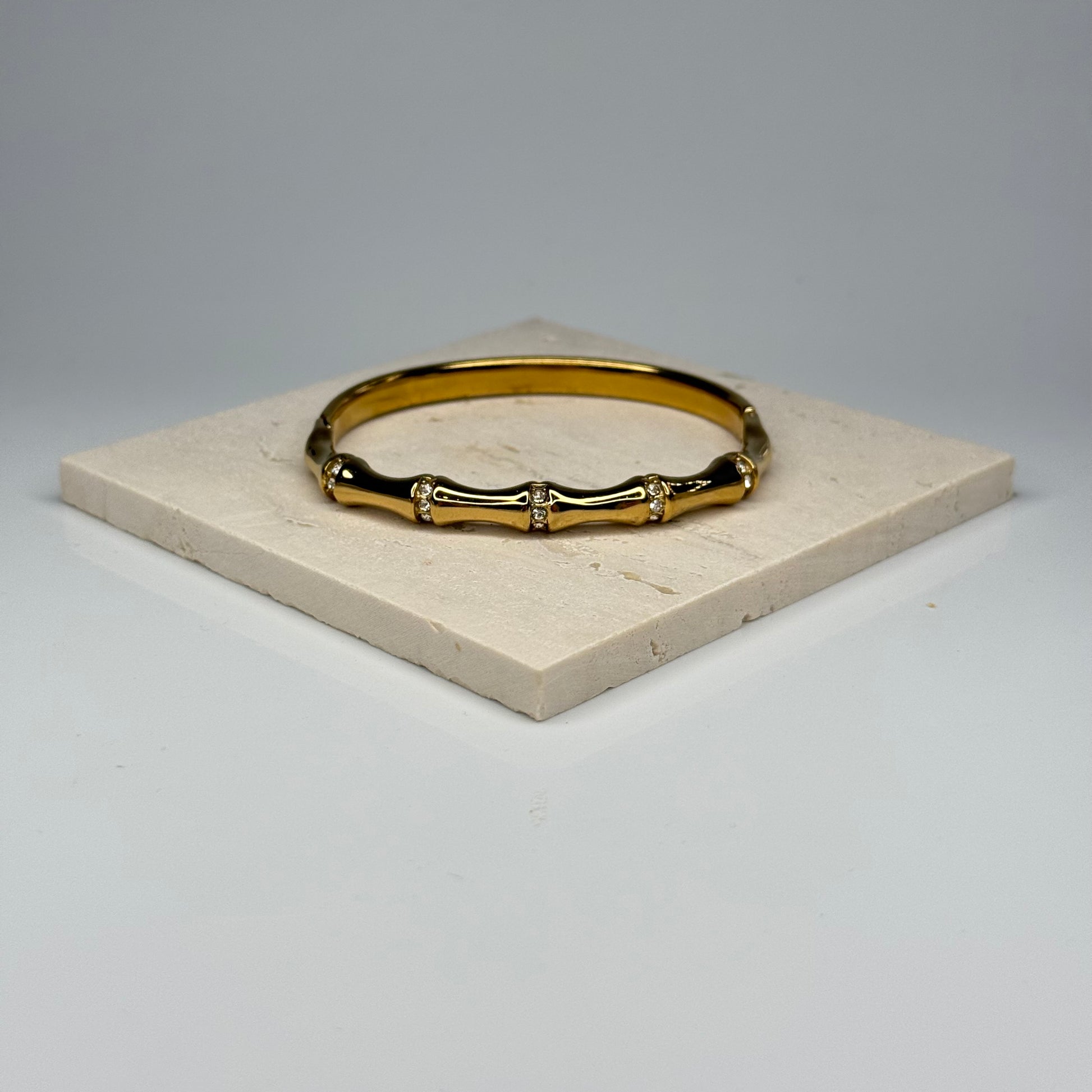 5A+ CZ Bamboo Style Bangle Bracelet - Gold Plated - DEAL OF THE DAY