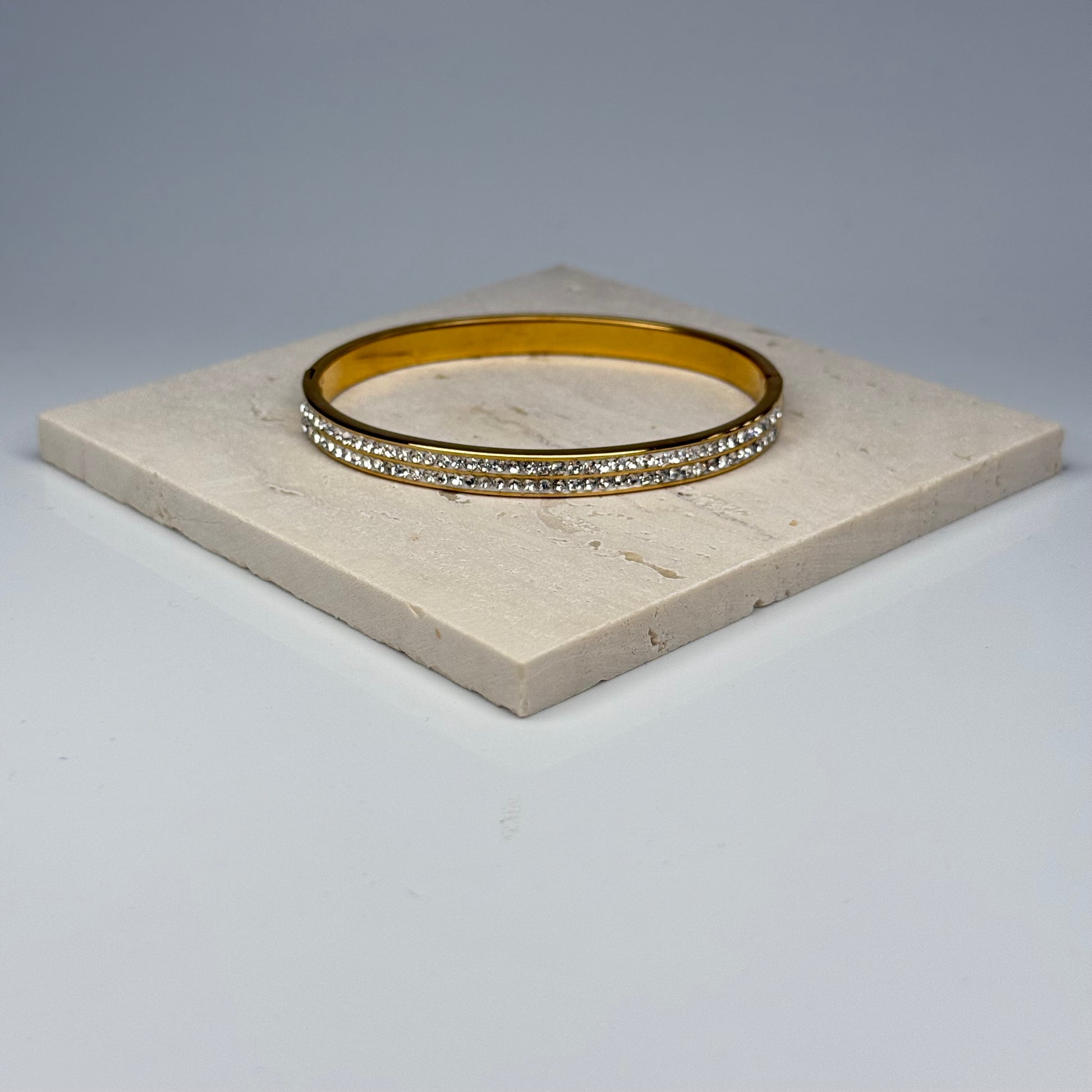 5A+ CZ Crystal Duo Strip Bangle Bracelet – Gold Plated - DEAL OF THE DAY