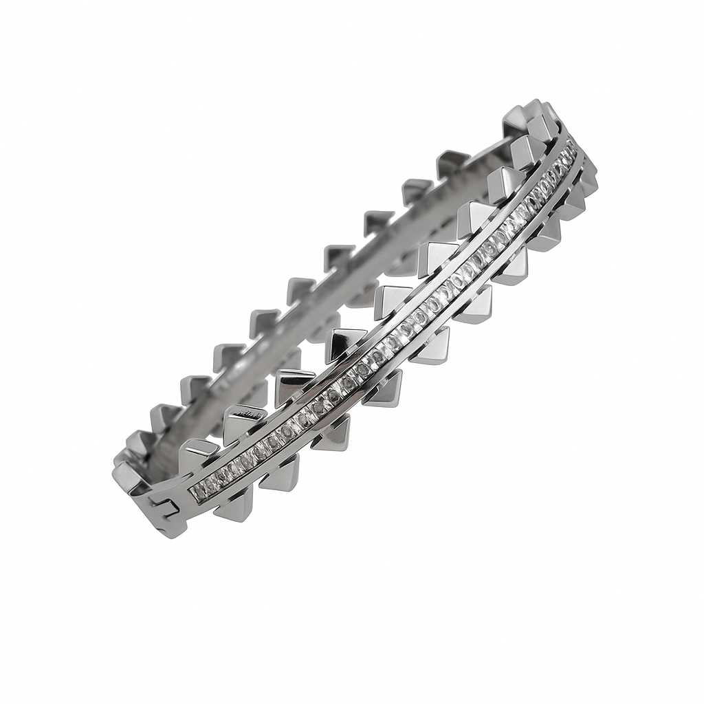 - Style: Geometric arrow motif bangle
