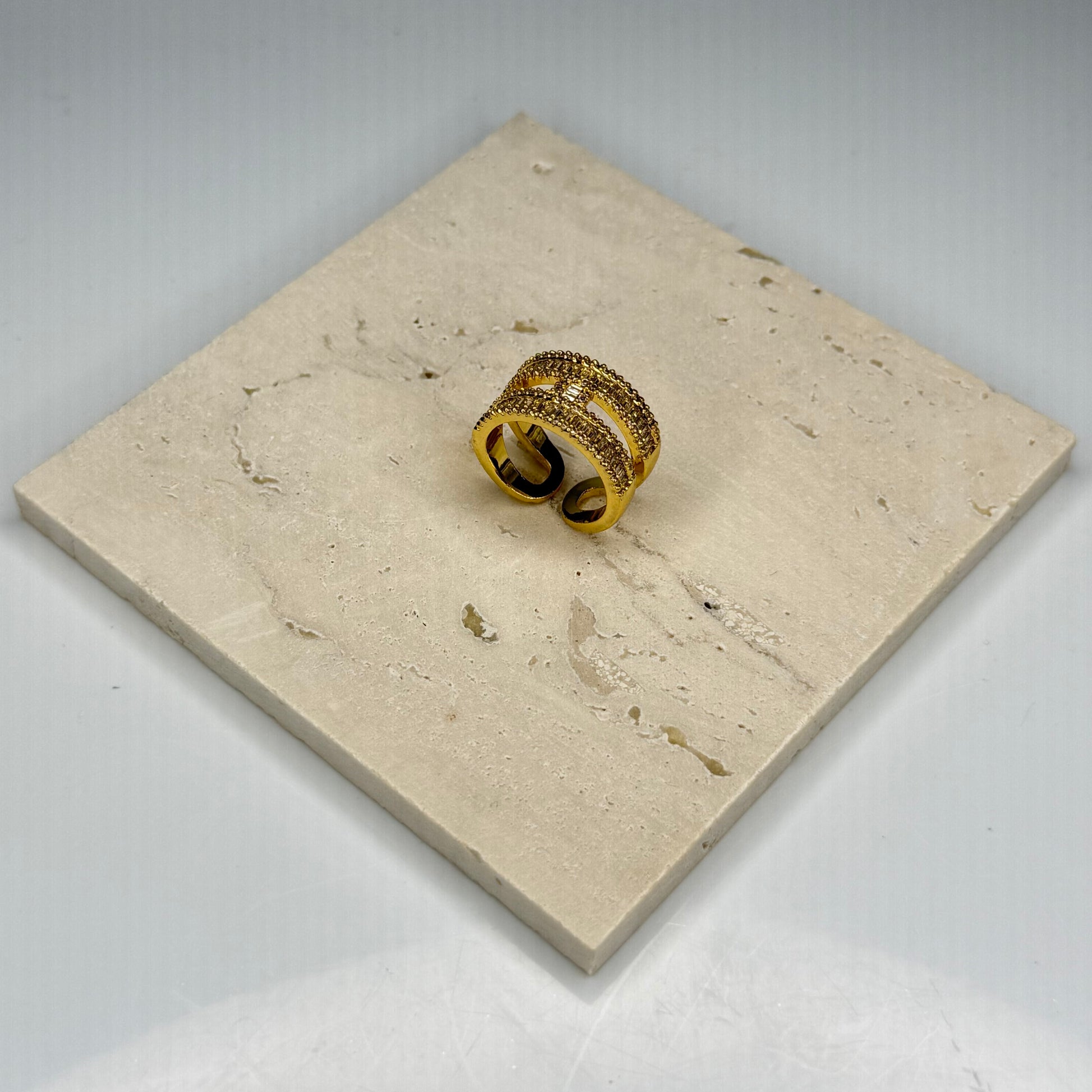 Add refined brilliance to your collection with this 5A+ CZ H-Style Double Row Crystal Band – Gold Plated, designed with an elegant H-shaped center framed by two sparkling rows of premium 5A+ cubic zirconia. Each stone is precision-cut to deliver stunning clarity and shine, creating a radiant, diamond-like finish that elevates the ring’s modern silhouette.