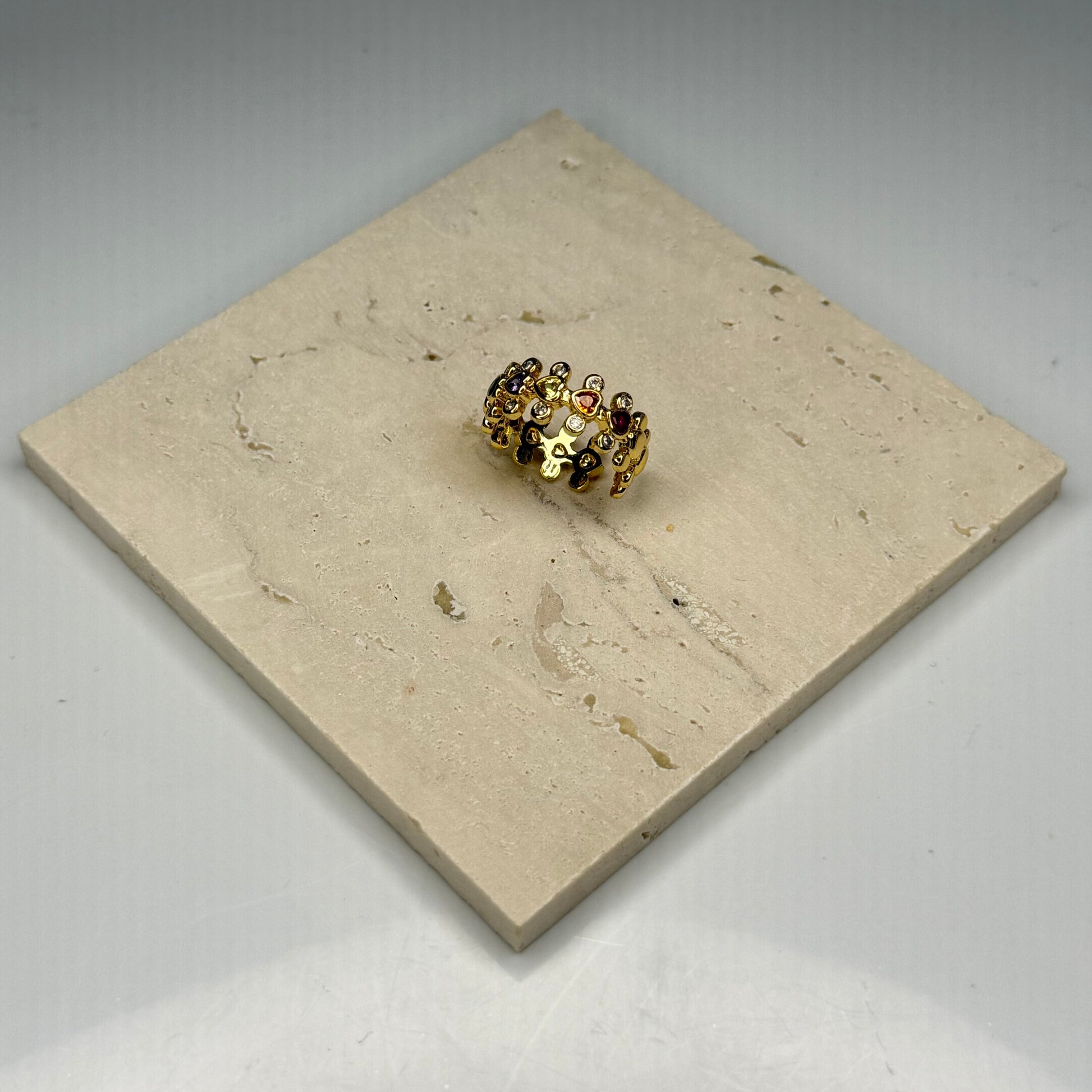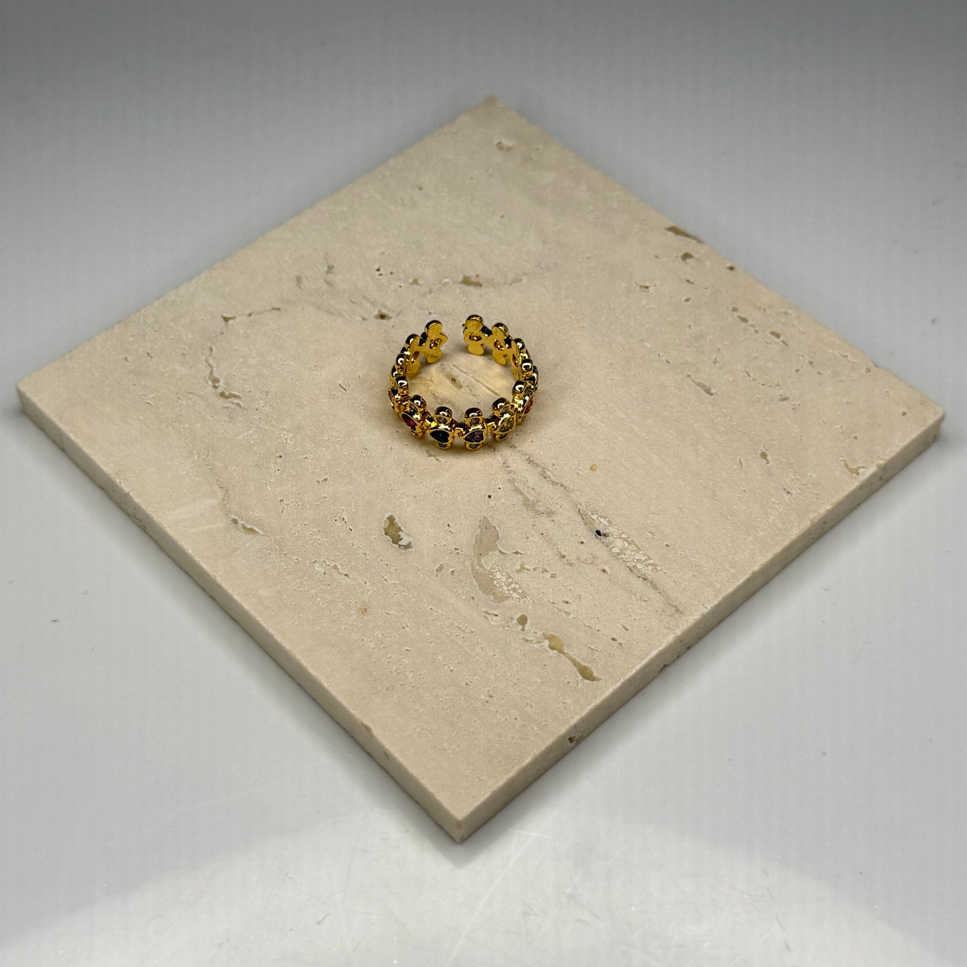 The polished gold-plated band enhances the vivid gemstones with warm, luminous contrast, making this ring a bold yet elegant statement piece perfect for both everyday wear and special occasions.