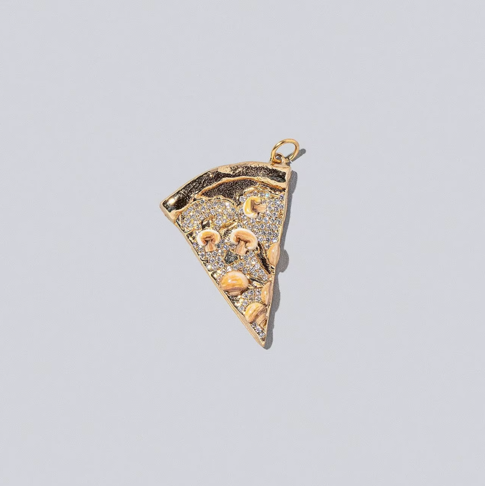 Add a flavorful touch of sparkle to your look with this 5A+ CZ Mushroom Pizza Pendant – Gold Plated, exquisitely handcrafted with intricate detailing and finished in radiant gold plating. Featuring a playful pizza slice design topped with shimmering 5A+ cubic zirconia stones and mushroom enamel accents, this pendant blends creativity with luxury—symbolizing joy, indulgence, and individuality.