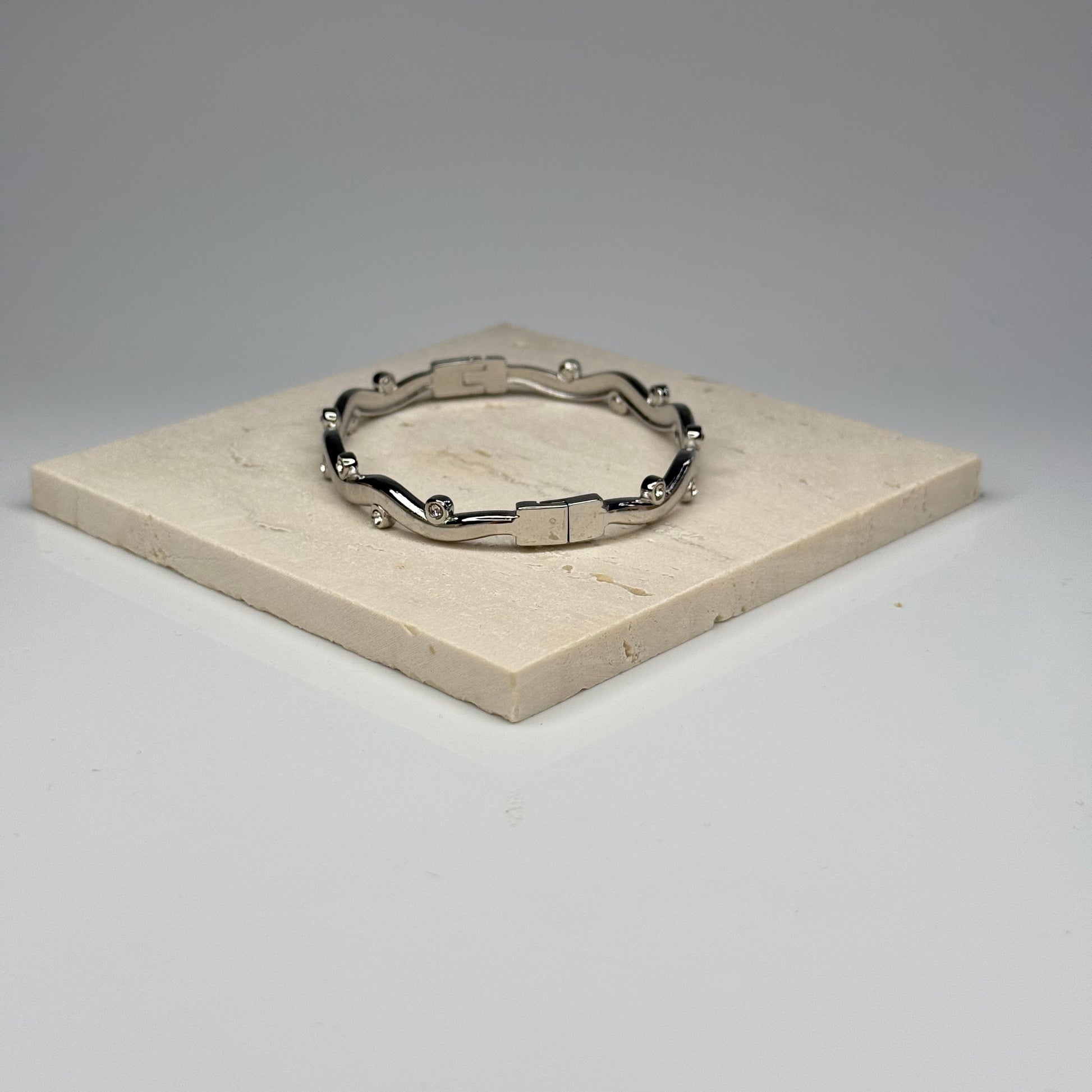 - Design: Flowing wave shape with raised bubble accents and CZ sparkle