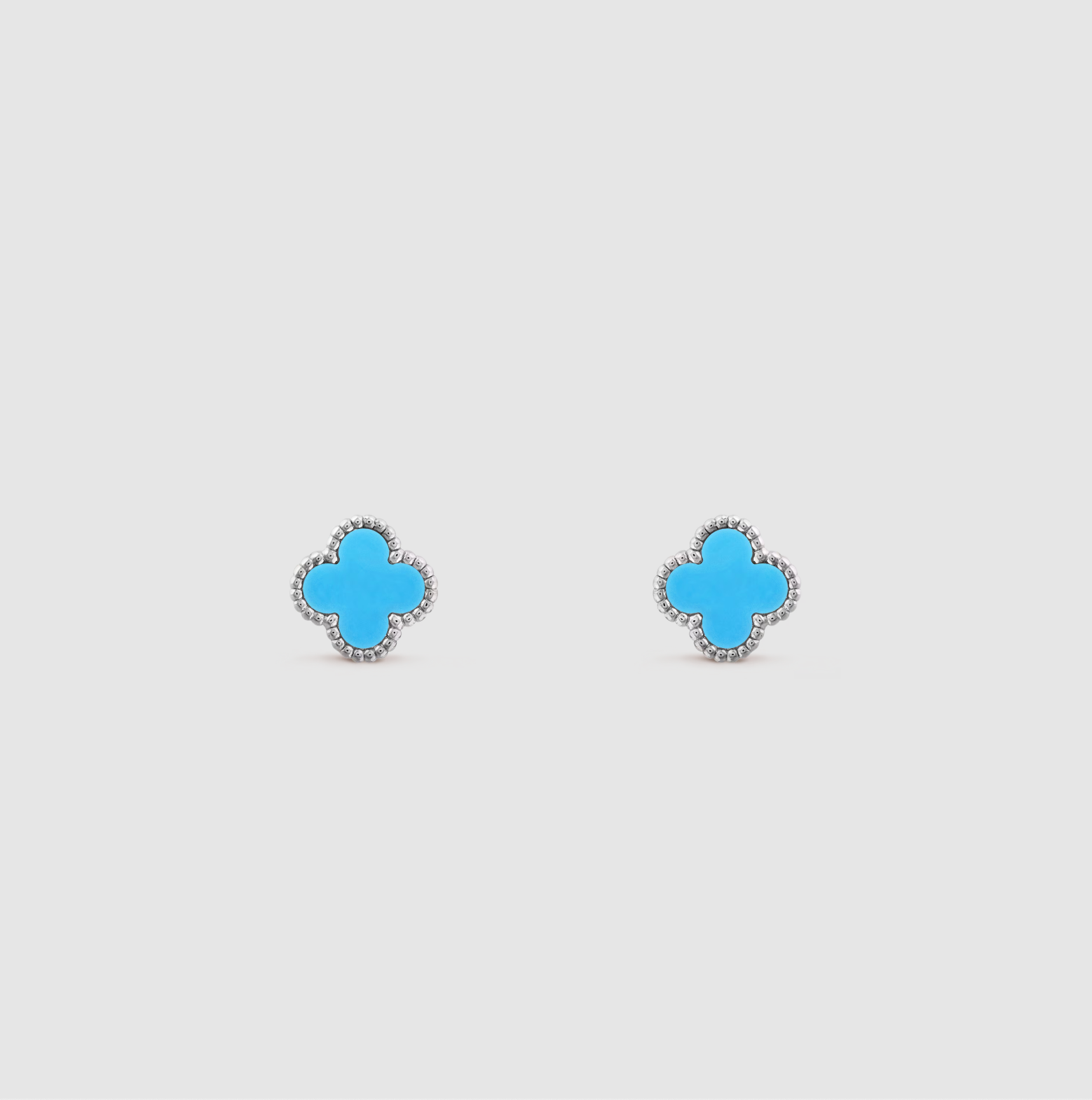 Add a touch of serene beauty with these Blue Agate Four Leaf Clover Earrings, handcrafted from 925 solid sterling silver. Featuring smooth blue agate inlays shaped into the iconic four-leaf clover, these earrings symbolize luck, calmness, and positivity.