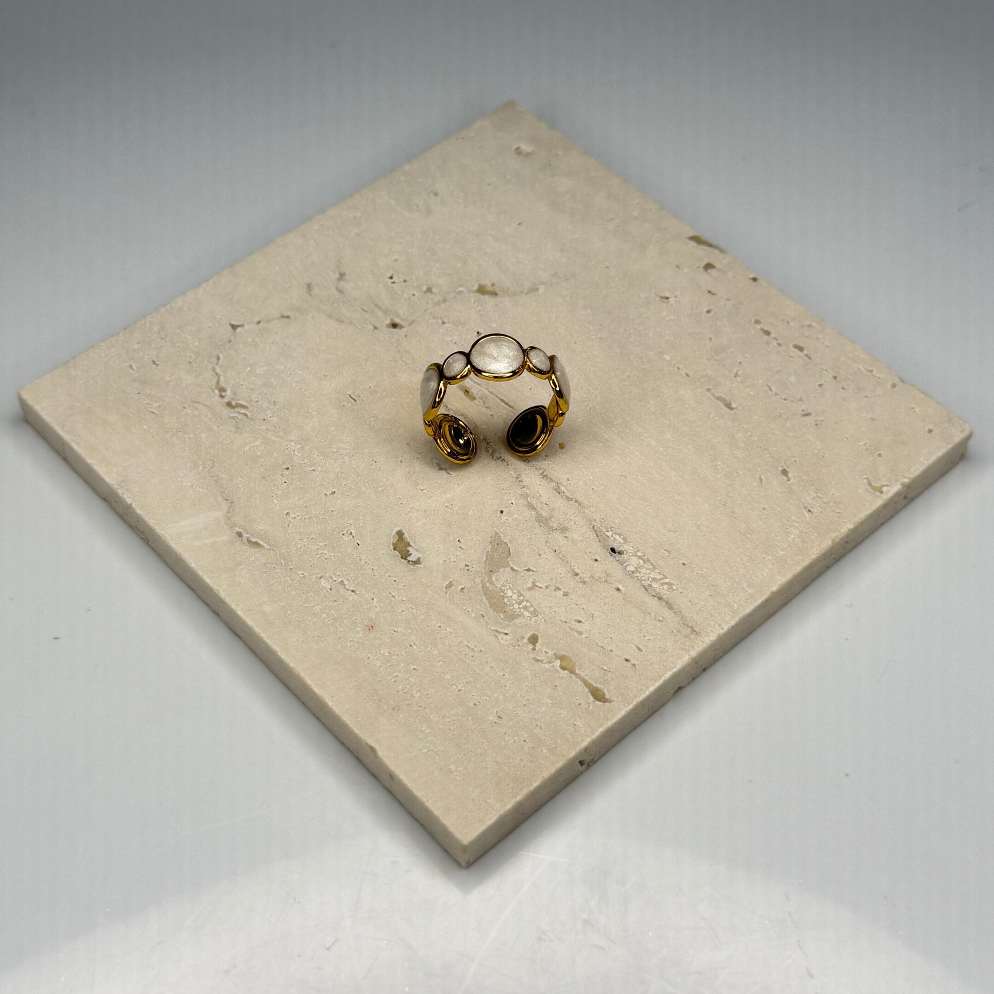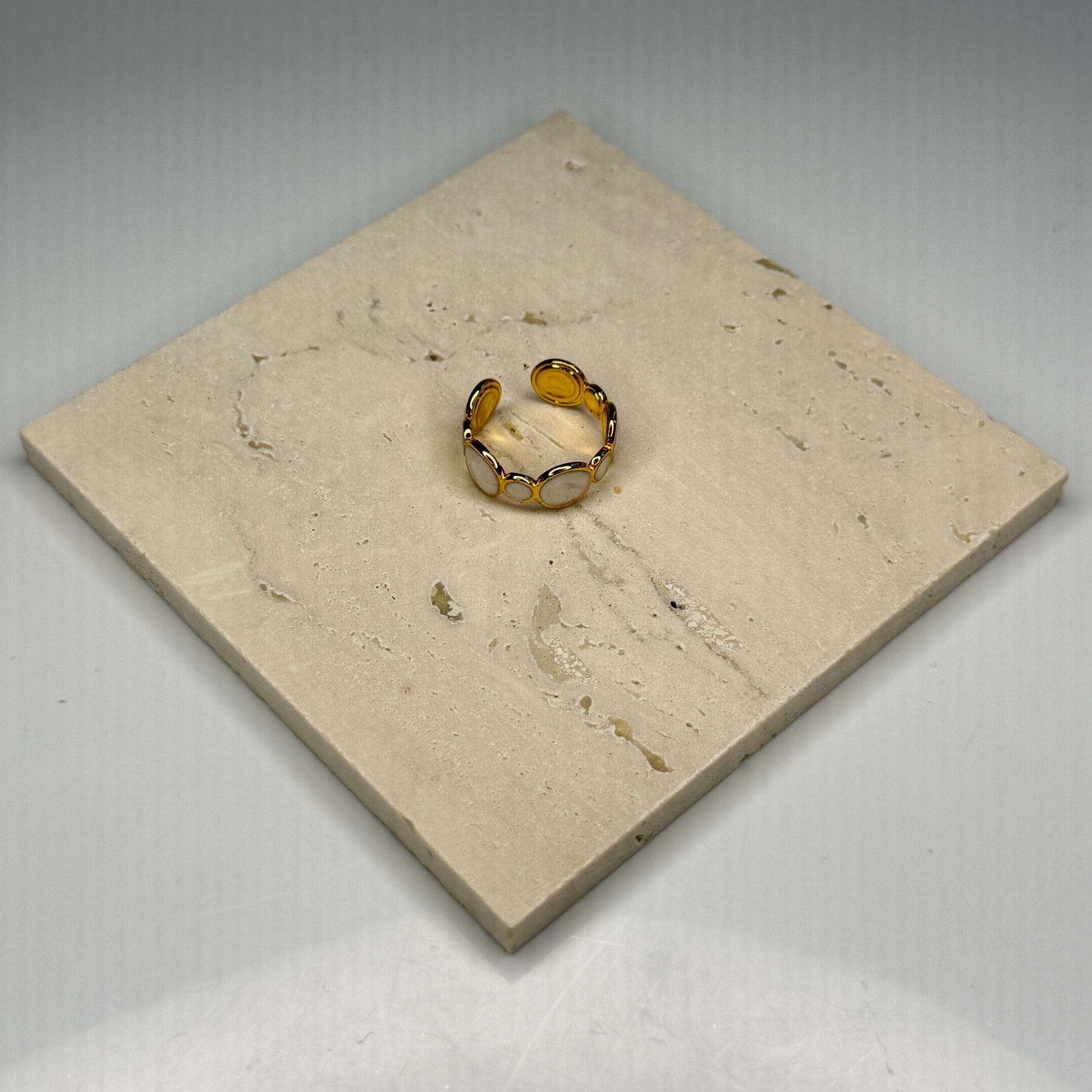 Embrace natural elegance with this Circle Shell Band – Gold Plated, designed with a smooth circular shell accent that adds soft, organic beauty to the polished gold band. The lustrous shell detail creates a subtle yet captivating focal point, while the warm gold-plated finish enhances the ring with refined, timeless shine.
