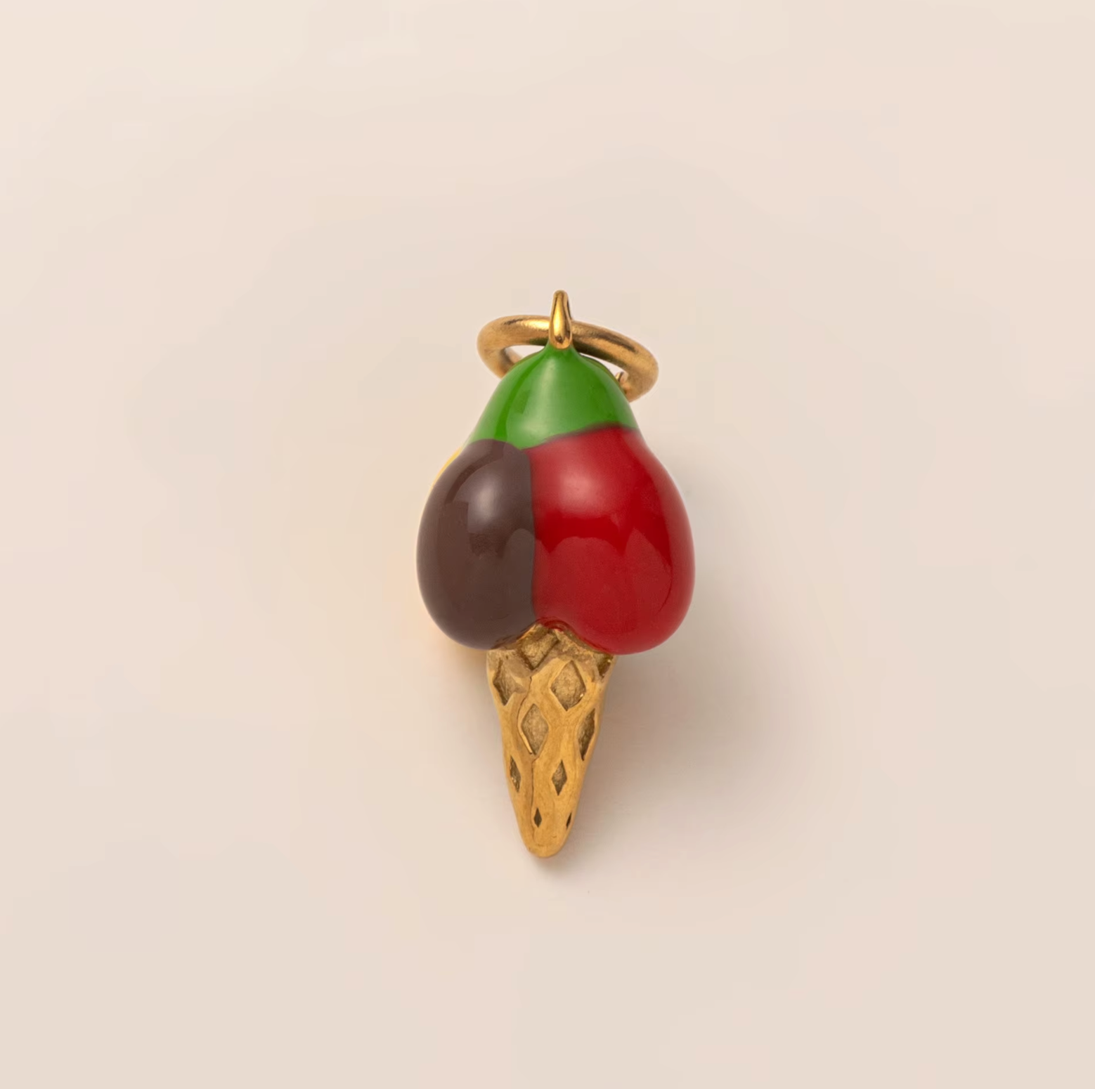 Enamel Ice Cream Cone Pendant - Gold Plated