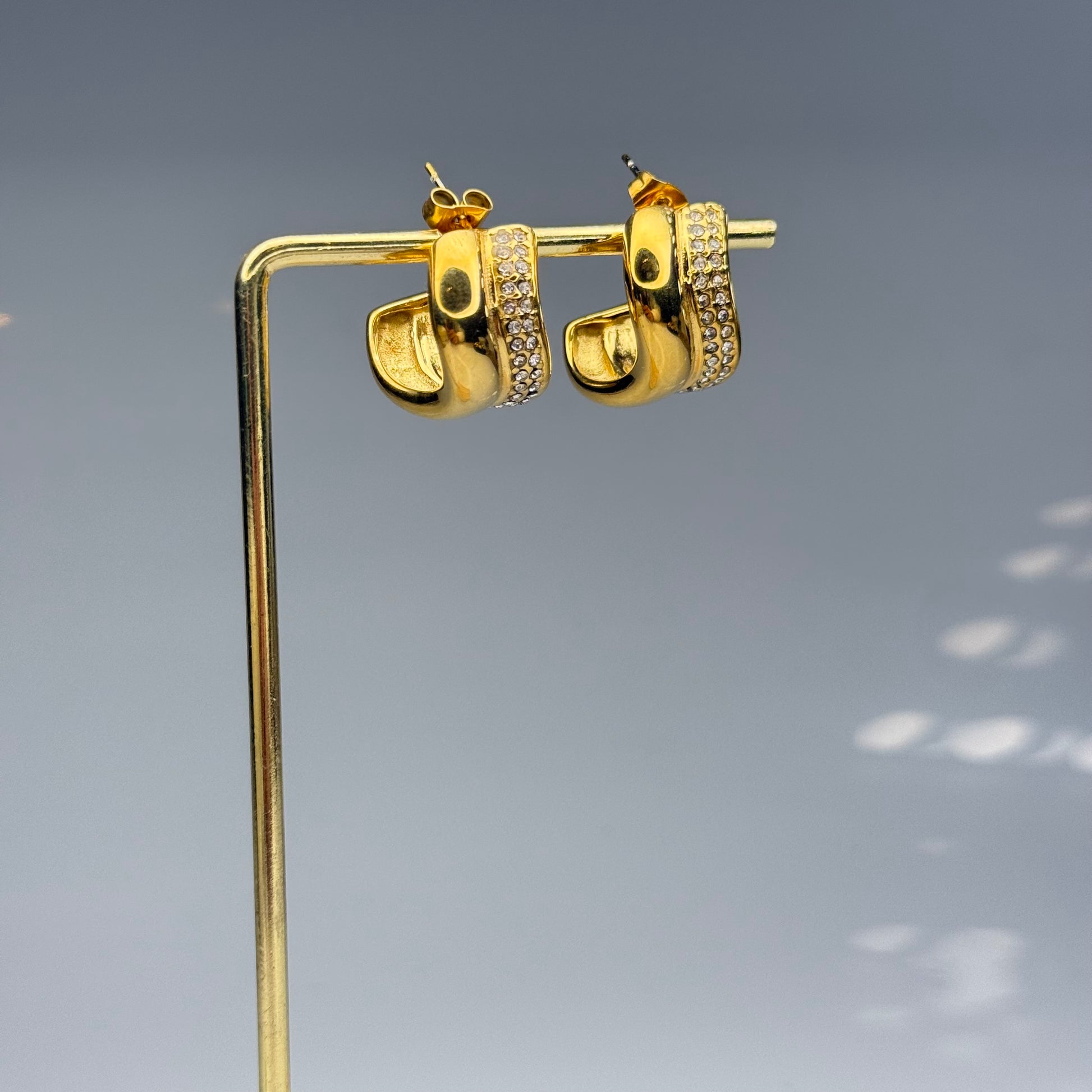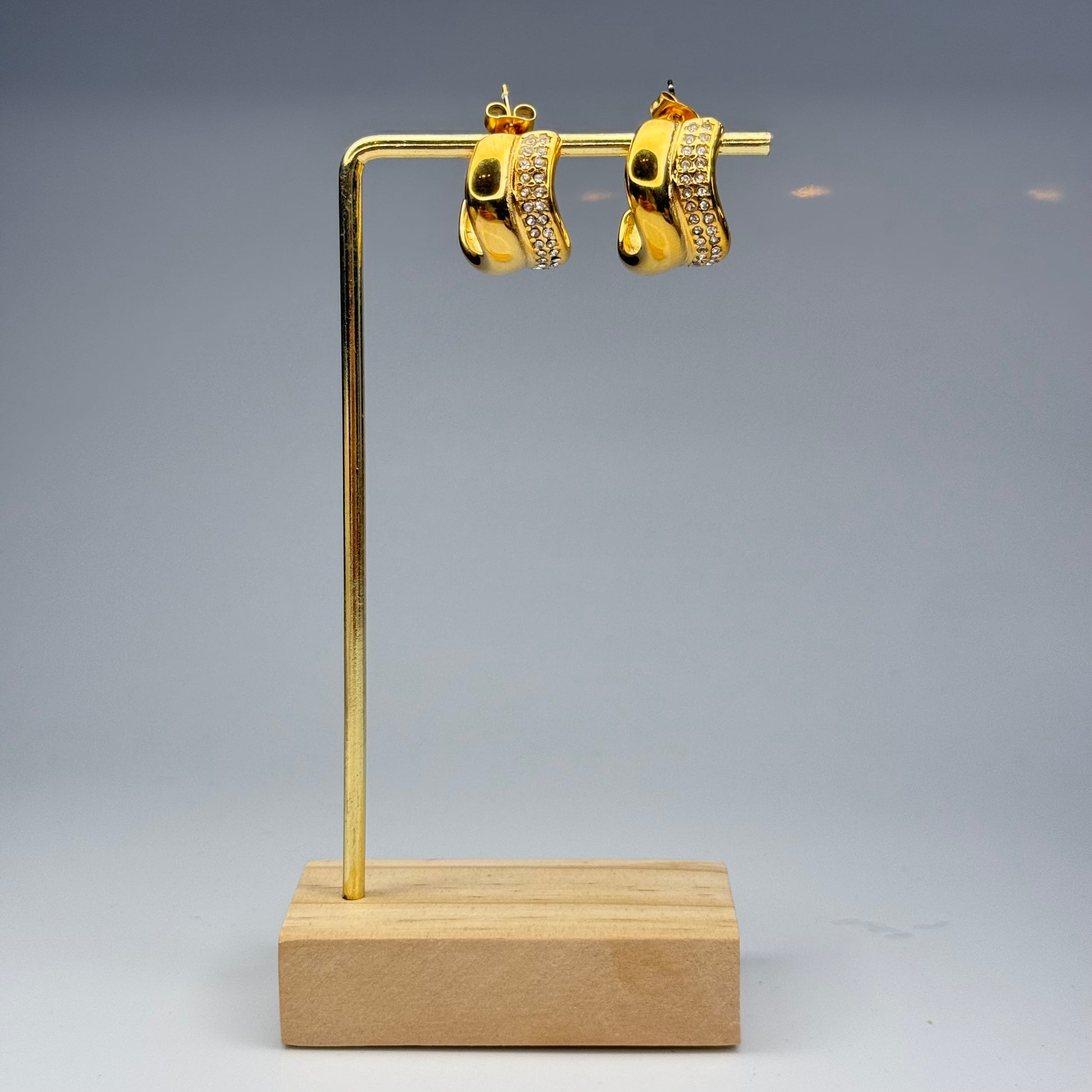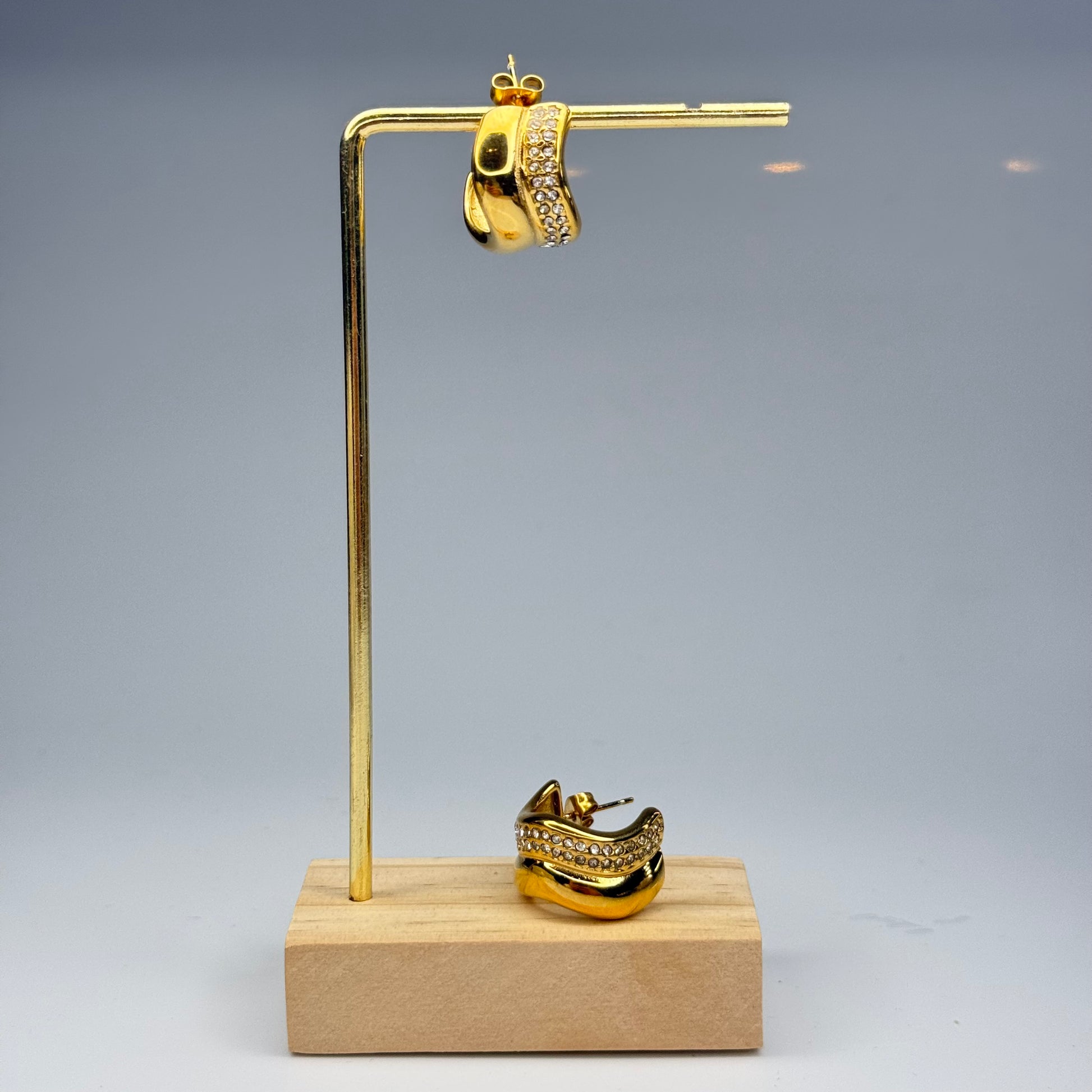 Finished in luxurious gold plating, these hoops strike the perfect balance between glamour and modern edge—ideal for elevating everyday looks or adding standout sparkle to special-occasion outfits.