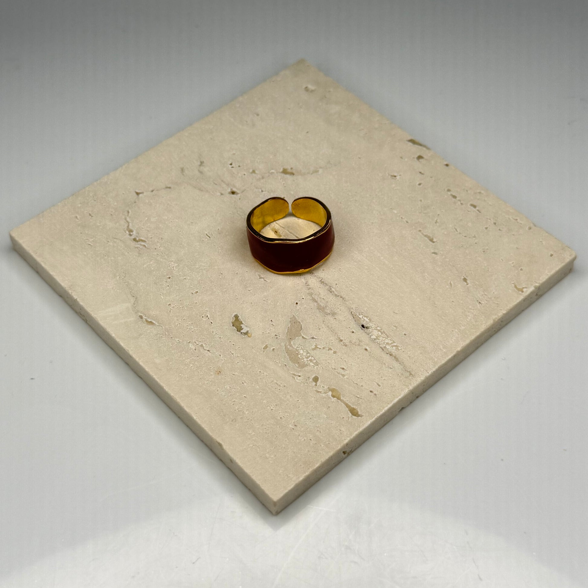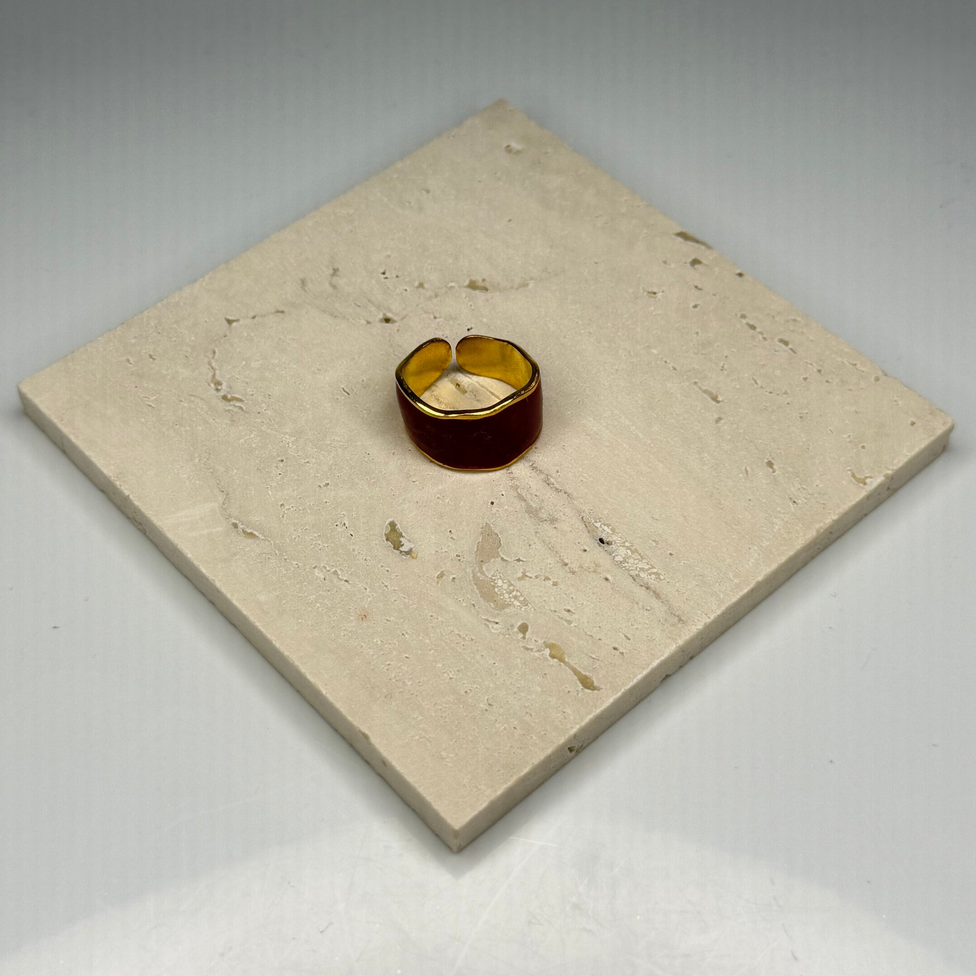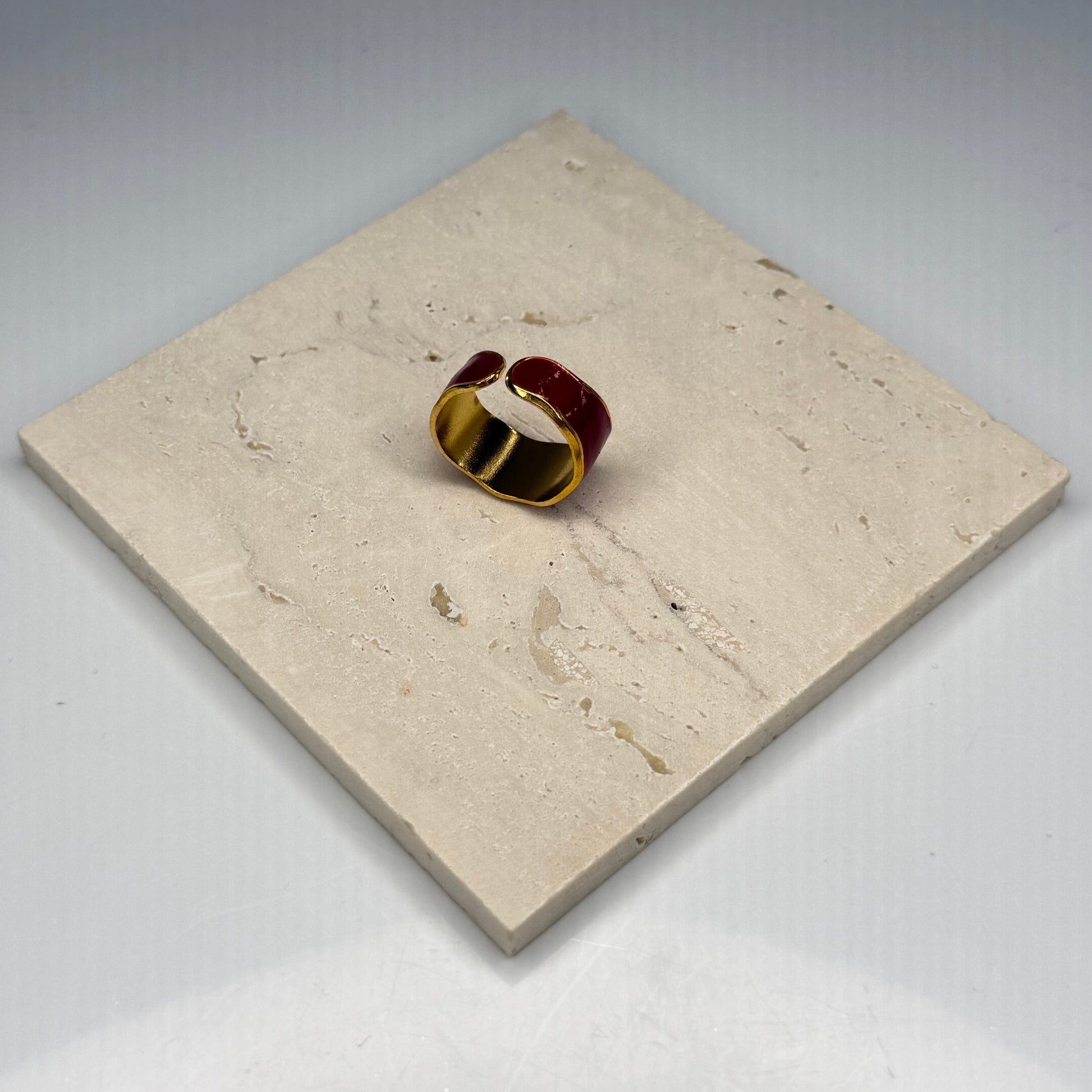 Add a bold pop of color to your style with this Ruby Enamel Band – Gold Plated, featuring a glossy ruby-red enamel finish that wraps smoothly around a polished gold-plated band. The rich enamel hue creates striking contrast against the warm golden shine, giving the ring a modern, eye-catching appeal.