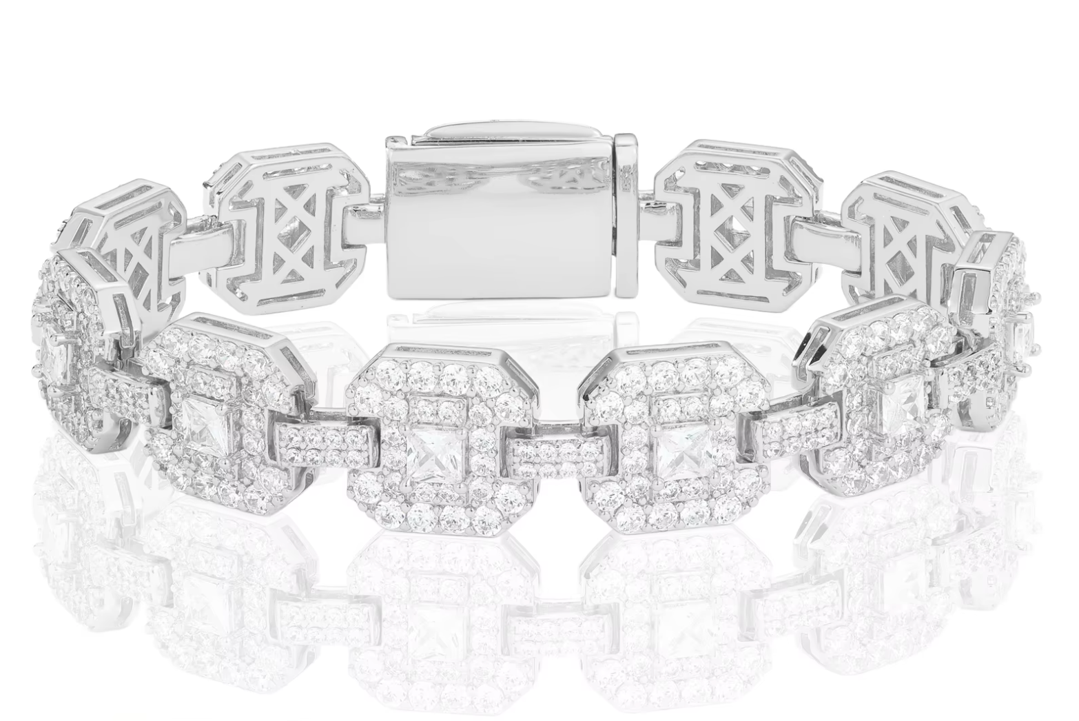Command attention with this VVS1 Moissanite 12mm Square Shaped Bracelet, expertly handcrafted from 925 solid sterling silver and set with high-grade moissanite stones. Each gem is precisely cut and hand-set to achieve maximum brilliance, delivering a sparkle that rivals the finest natural diamonds.