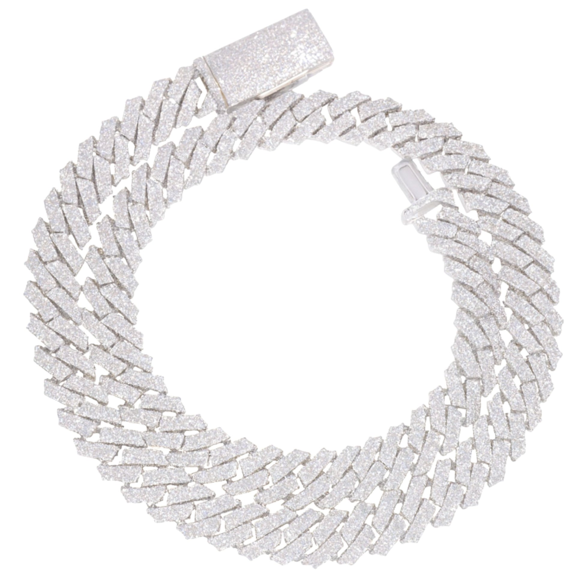 Elevate your style with this 12mm Two Rows Cuban Link Chain, handcrafted from 925 solid sterling silver and set with premium VVS1 moissanite stones. Featuring a bold double-row Cuban link design, each stone is carefully hand-set and cut with excellent European precision, ensuring maximum brilliance, fire, and clarity. The 12mm width gives this chain a luxurious, eye-catching presence, perfect for making a statement or layering with other pieces.