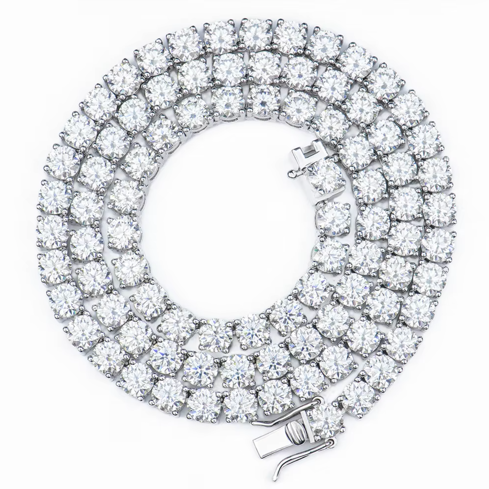 Radiate confidence and brilliance with this VVS1 Moissanite 5mm Tennis Chain, meticulously handcrafted to perfection. Each 5mm VVS1 moissanite stone is expertly hand-set and cut with precision, producing a breathtaking sparkle that rivals the brilliance of the finest natural diamonds.