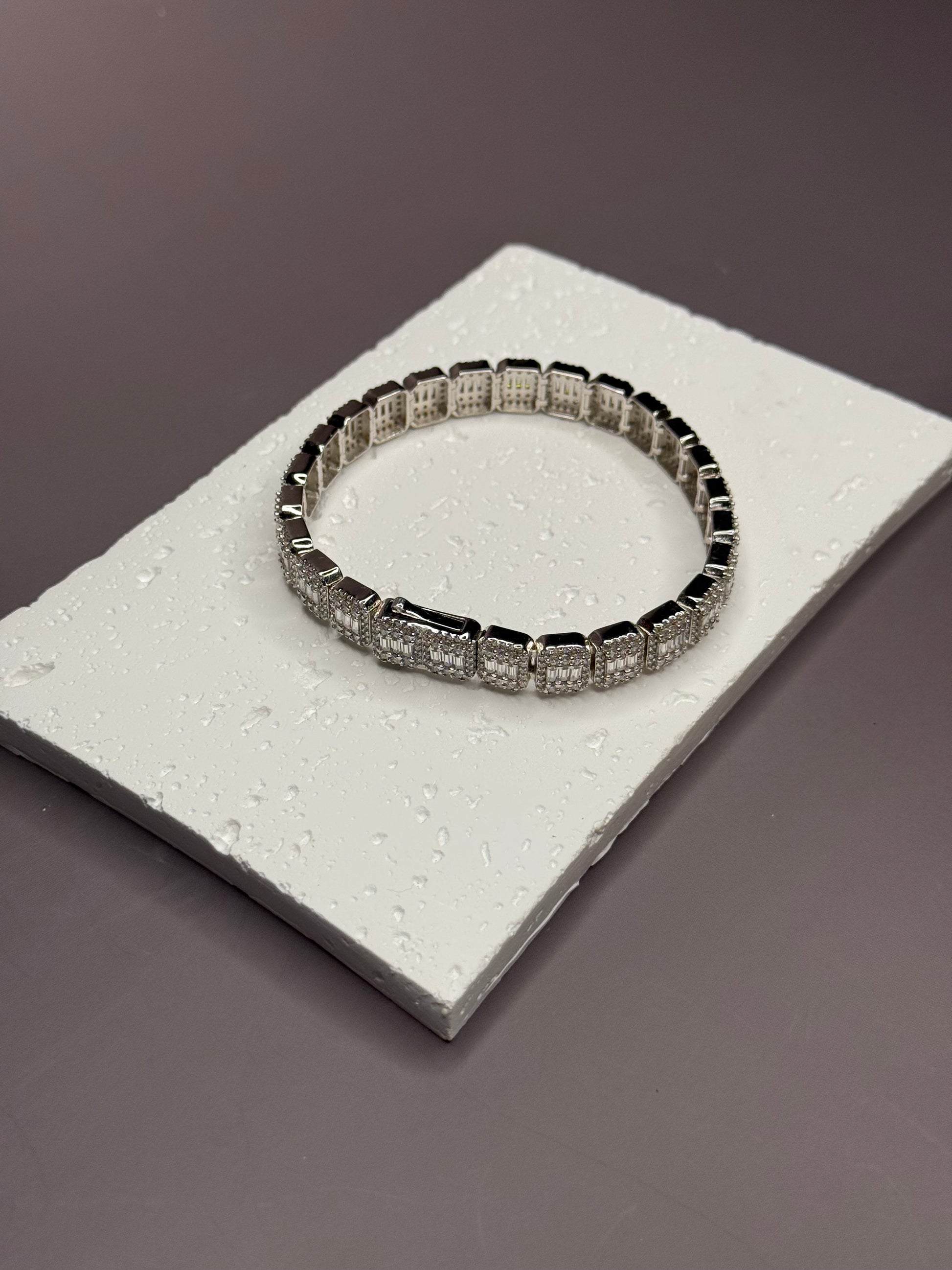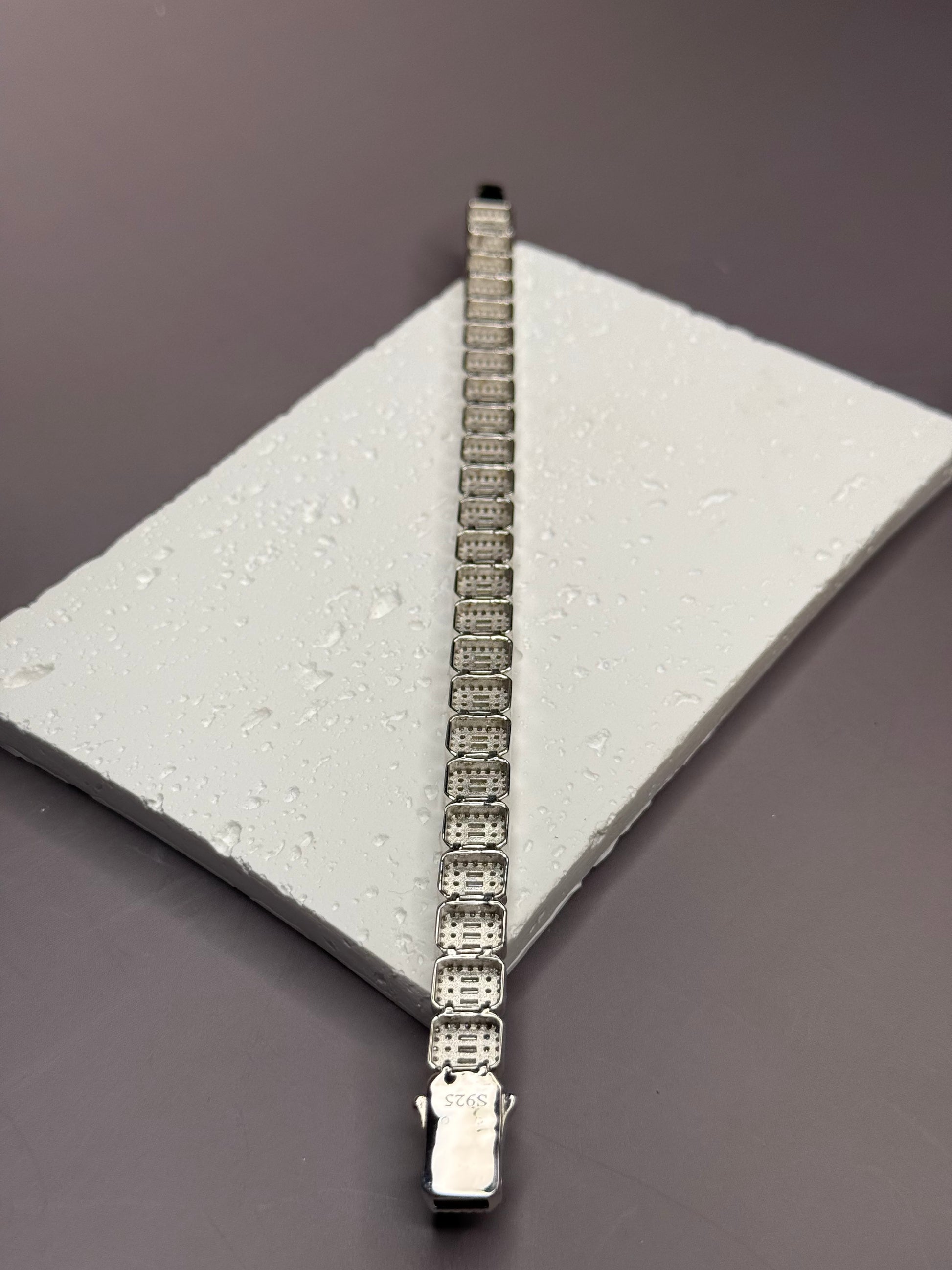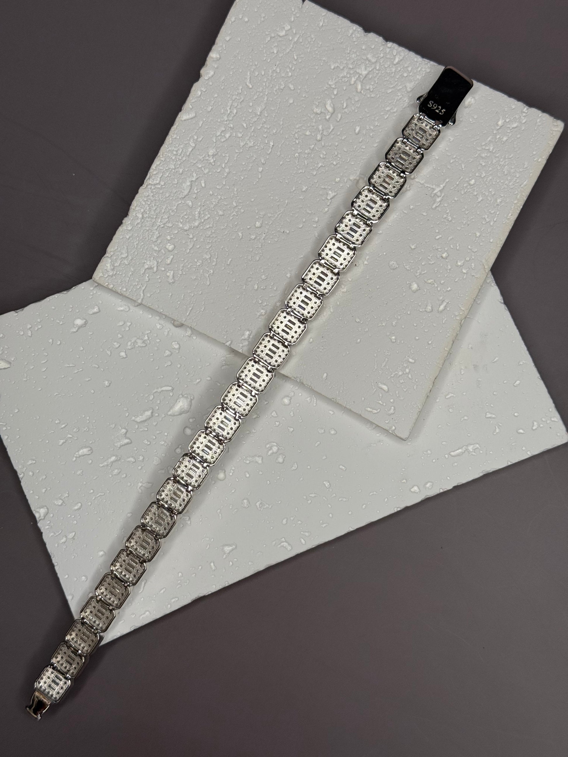 Make a powerful style statement with this 9mm Baguette & Rounded Bracelet, handcrafted from 925 solid sterling silver and set with premium VVS1 moissanite stones. Combining the sleek geometry of baguette cuts with the smooth elegance of rounded stones, this unique design delivers unmatched brilliance from every angle. Each stone is hand-set and cut using excellent European precision, ensuring exceptional sparkle, clarity, and fire. Perfect for both luxury streetwear and formal occasions, this piece is as versatile as it is striking.