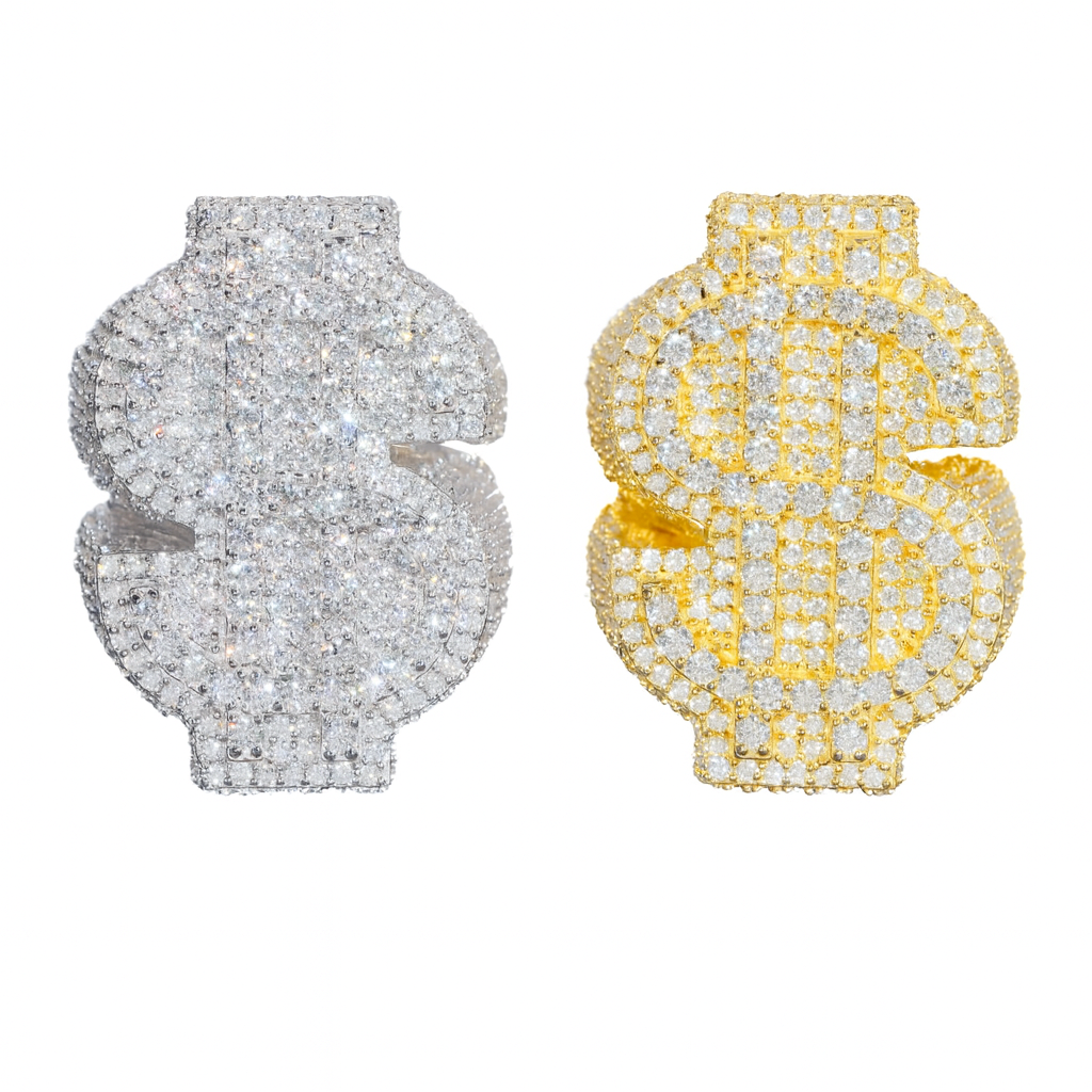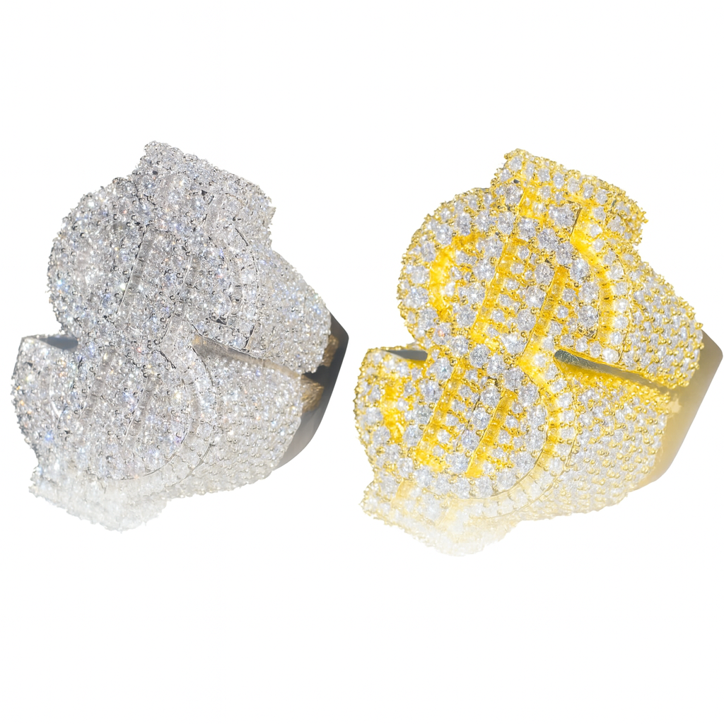 Show off your bold style with the VVS1 Moissanite Dollar Sign Ring, expertly handmade from 925 solid sterling silver. Designed with the iconic dollar sign motif, this striking ring is fully encrusted with brilliant VVS1 moissanite stones that deliver unmatched sparkle, fire, and clarity. Each stone is hand-set and cut with excellent European precision, ensuring a luxurious shine that rivals natural diamonds. Perfect as a statement accessory, this iced-out ring embodies confidence, success, and individuality.