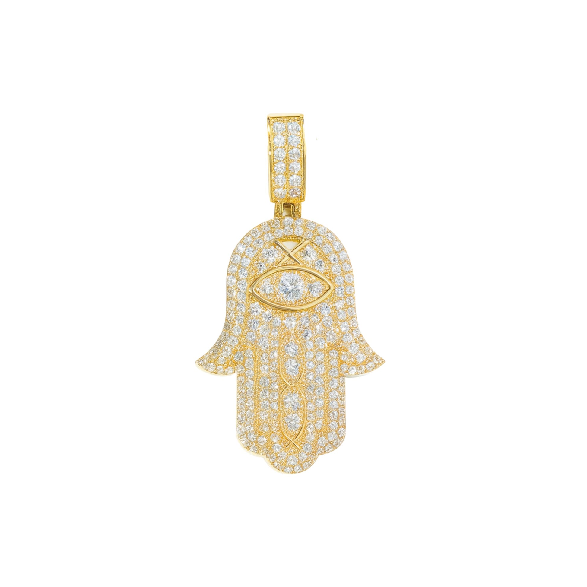 Embrace protection and elegance with the VVS1 Moissanite Hamsa Pendant, skillfully handmade from 925 solid sterling silver. The Hamsa, a universal symbol of protection, blessings, and good fortune, is beautifully reimagined with dazzling VVS1 moissanite stones. Each gem is cut with excellent European precision, ensuring maximum brilliance, fire, and clarity. Designed to be both meaningful and luxurious, this pendant makes a powerful statement whether worn daily or on special occasions.