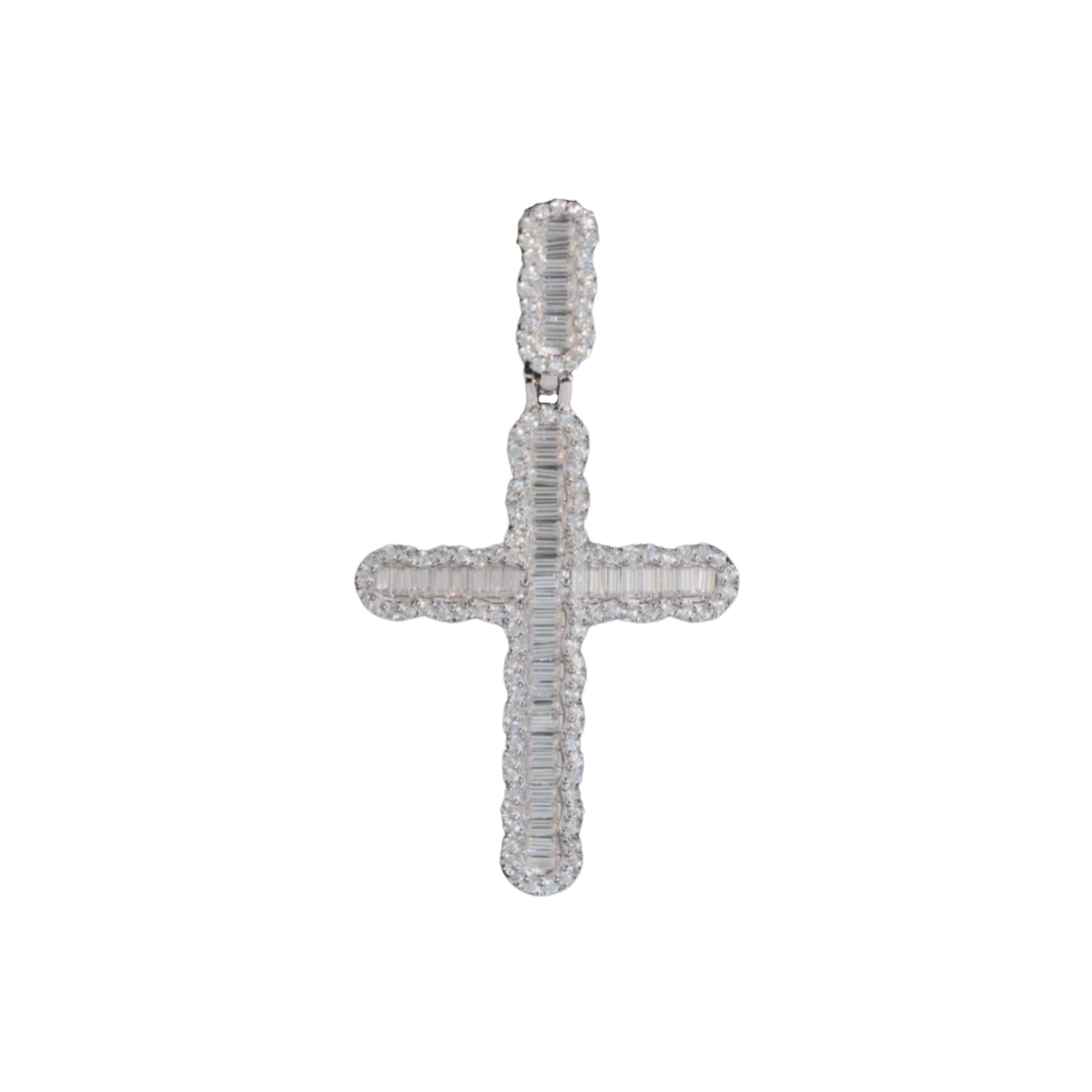 VVS1 Moissanite Iced-Out Baguette Cross Pendant